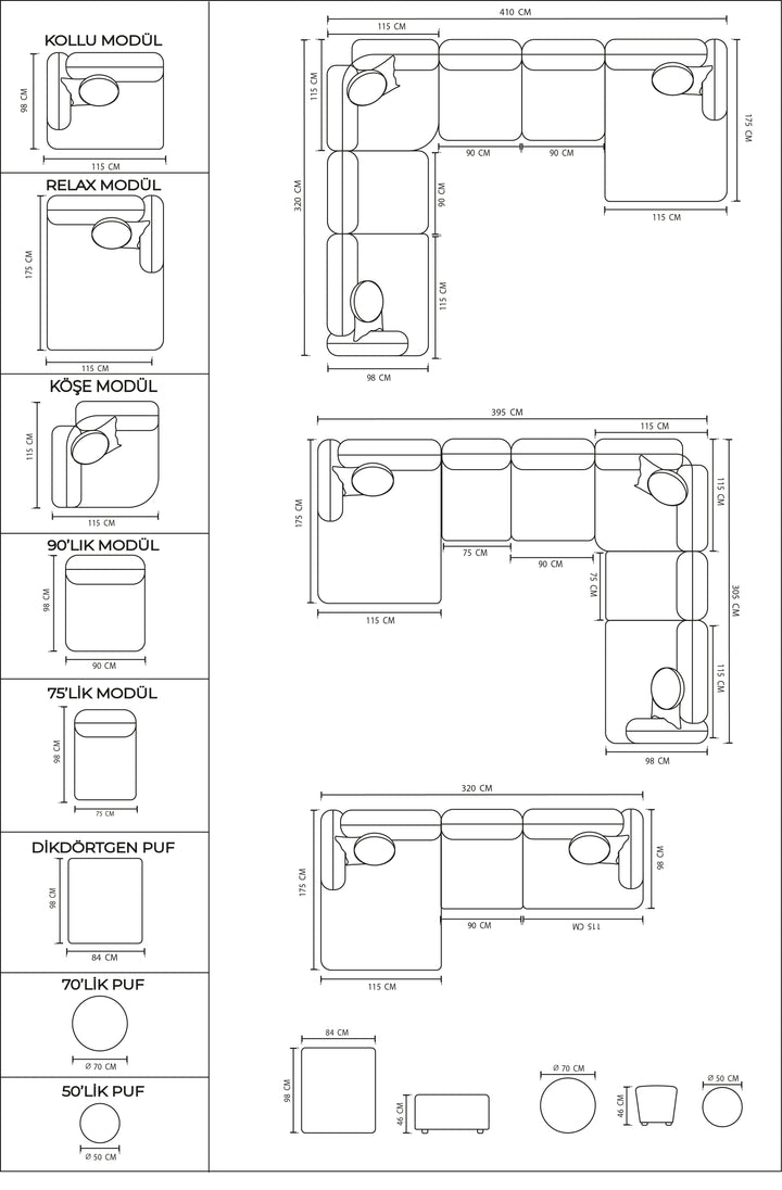 - Modulară: poate fi alcătuită din atâtea module cât vă permite spațiul dvs. Se poate configura ca o canapea în linie dreaptă sau colțar.