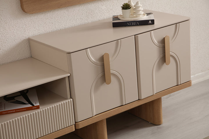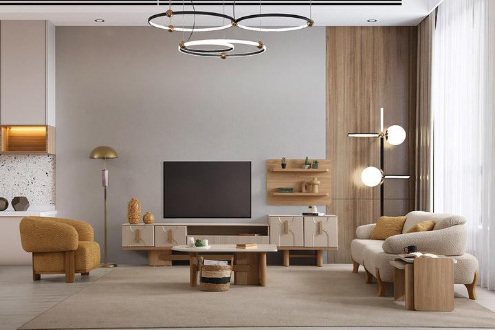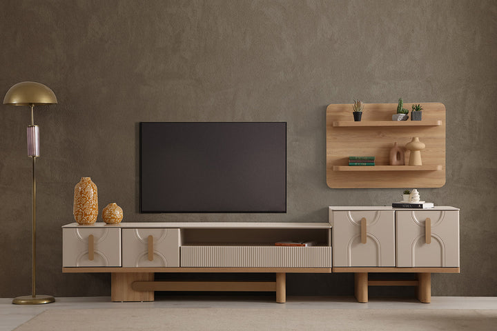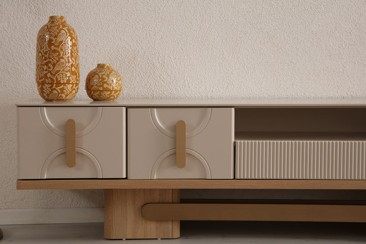 Comodă TV Bianco se remarcă prin designul și funcționalitatea sa elegantă. Fabricate din materiale de înaltă calitate, aceste unități adaugă o notă modernă camerei tale cu stilul lor minimalist și combinației de culori cașmir cu detalii din lemn. În același timp, oferă utilizare practică, permițându-vă să depozitați echipamentele tehnologice într-un mod organizat. Oferă un echilibru excelent în estetică și funcționalitate.