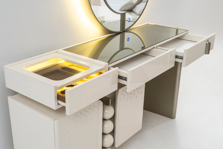 Comodă de machiaj + oglindă lățime 164 cm, adâncime 49 cm, înălțime 82 cm Preț: 6400 Lei