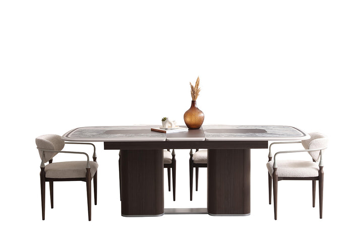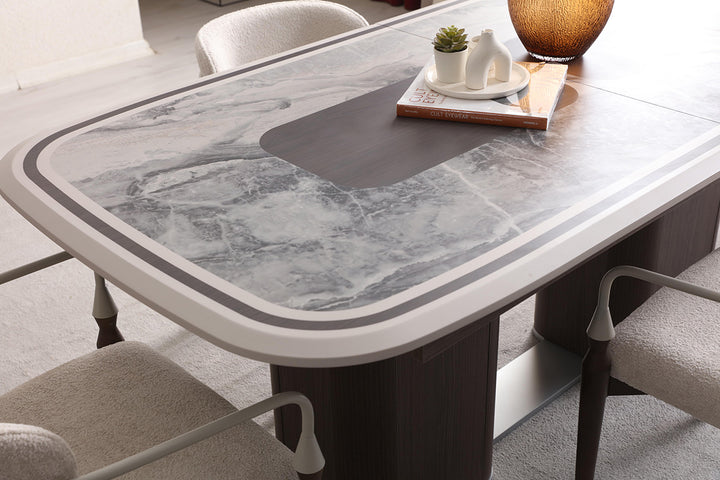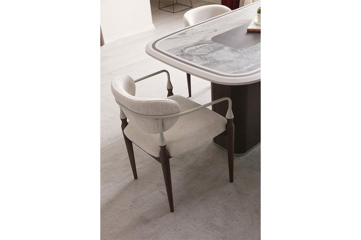 Mobilierul este realizat din MDF vopsit de înaltă calitate, oferind atât durabilitate, cât și un aspect rafinat. Scaunele din această colecție sunt personalizabile, putând fi comandate pe orice țesătură disponibilă în paletarul de cusături. Astfel, poți alege finisajul perfect pentru a se potrivi stilului tău și designului încăperii.