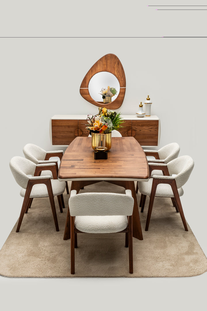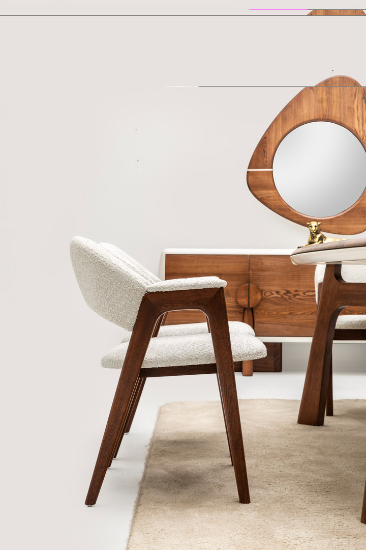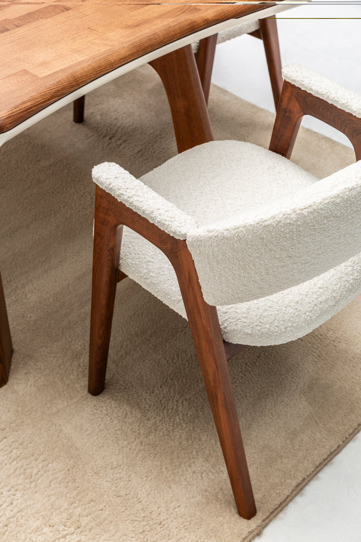 Scaun CORVETTE realizat din lemn masiv și stofe buclate, cu linii rotunjite ce poate fi ușor încadrat în orice living, fie el modern sau clasic accentuând atât confortul cât și funcționalitatea. Se poate comanda în mai multe variante de stofe și culori.